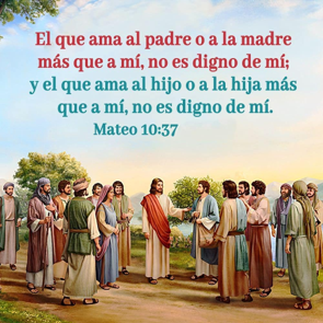 "El que ama al padre o a la madre más que a Mí, no es digno de Mí; y el que ama al hijo o a la hija más que a Mí, no es digno de Mí". Mateo 10:37