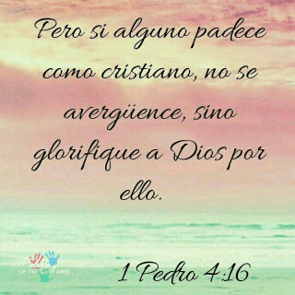 "Pero si alguno sufre como cristiano, que no se avergüence, sino que como tal glorifique a Dios". 1 Pedro 4:16