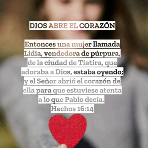 "Y estaba escuchando cierta mujer llamada Lidia, de la ciudad de Tiatira.... que adoraba a Dios; y el SEÑOR abrió su corazón para que recibiera lo que Pablo decía". Hechos 16:14