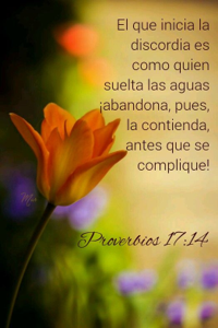 "El que comienza la discordia es como quien suelta las aguas; Deja, pues, la contienda, antes que se enrede". Proverbios 17:14