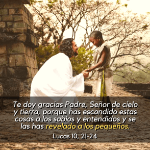 Yo te alabo, oh Padre, SEÑOR del Cielo y de la Tierra, porque escondiste estas cosas de los sabios y entendidos, y las has revelado a los niños. Sí, Padre, porque esa fue tu buena voluntad". Lucas 10:21
