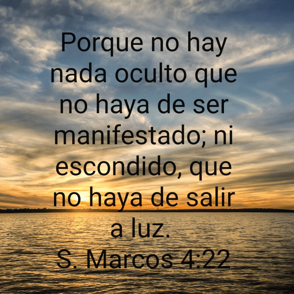 "Porque no hay nada oculto que no haya de ser manifestado; ni escondido, que no haya de salir a luz". Marcos 4:22