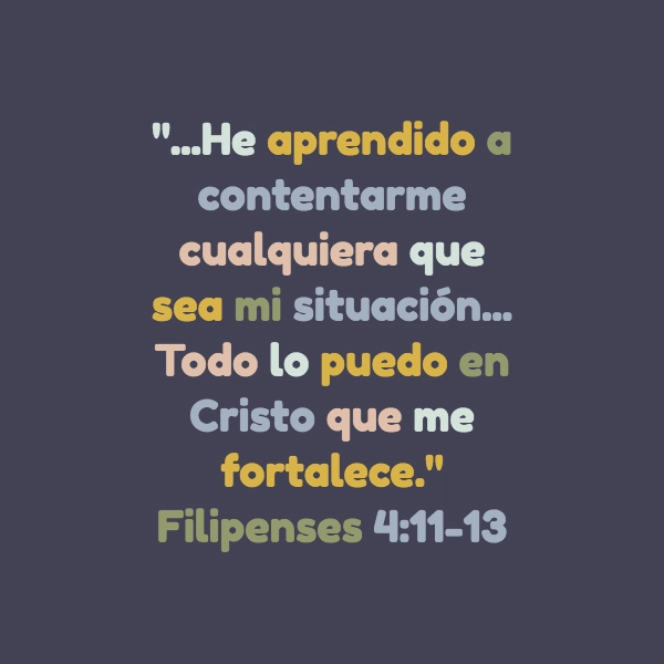 He aprendido a contentarme cualquiera que sea mi situación. Sé vivir en pobreza, y sé vivir en prosperidad; en todo y por todo he aprendido el secreto tanto de estar saciado como de tener hambre, de tener abundancia como de sufrir necesidad. Filipenses 4:11-12