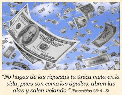 ¿Has de poner tus ojos en las riquezas, siendo tan fugaces? Porque se harán como alas de águila, y volarán. Proverbios 23:5
