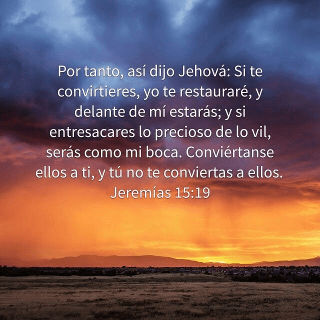 "Si vuelves, Yo te restauraré, En Mi presencia estarás; Si apartas lo precioso de lo vil, Serás Mi portavoz". Jeremías 15:19