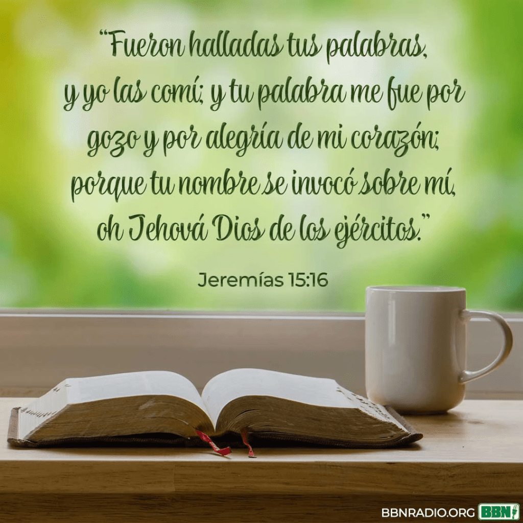 "Fueron halladas tus palabras, y yo las comí. Tus palabras fueron para mí el gozo y la alegría de mi corazón...." Jeremías 15:16