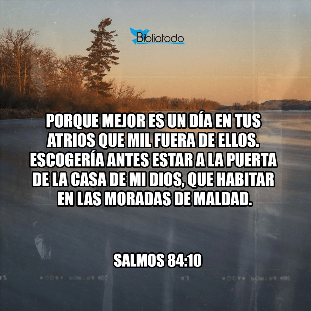 Porque mejor es un día en Tus Atrios que mil fuera de ellos. Prefiero ser portero del templo de mi Dios, que vivir en lugares de maldad. Salmo 84:10