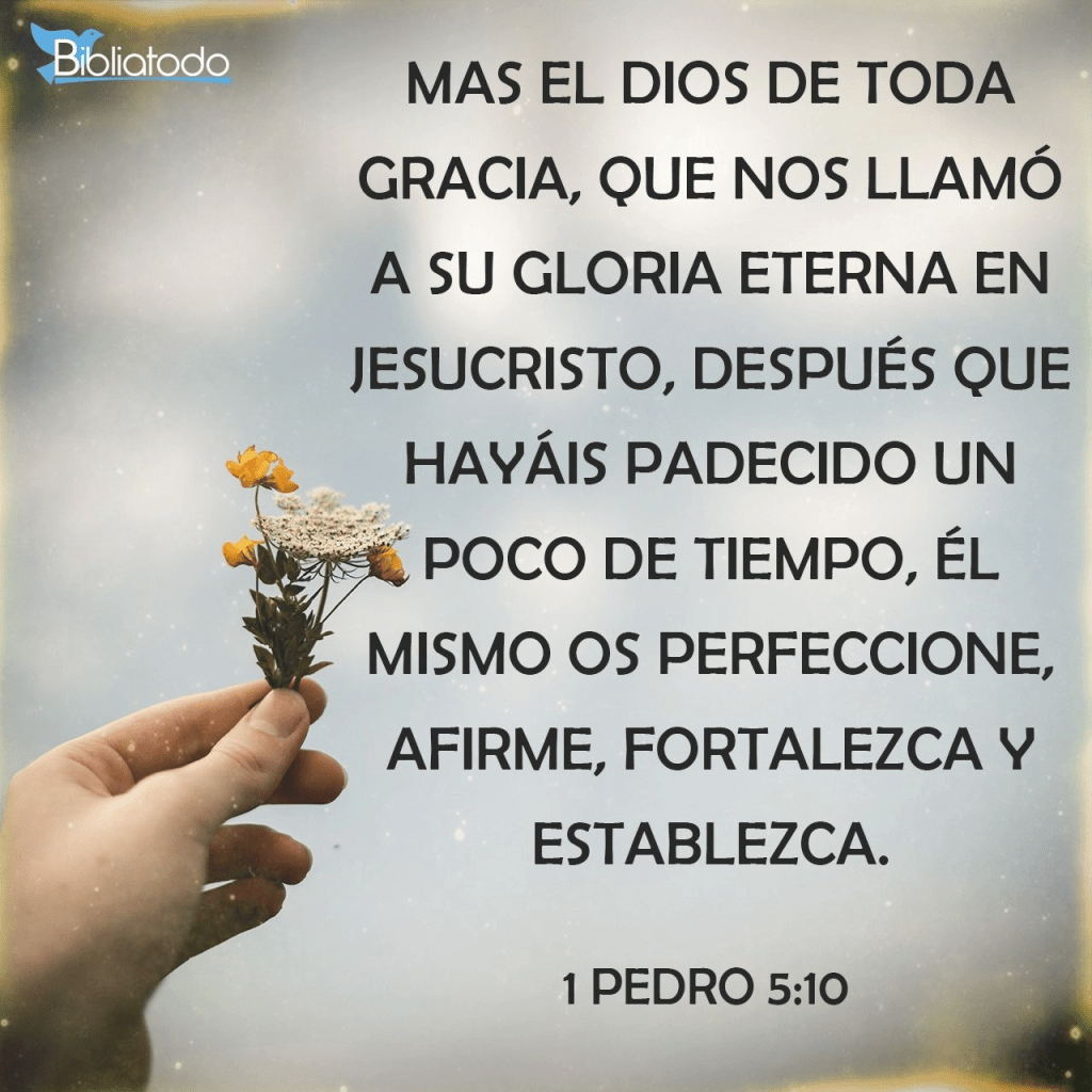 "Mas el Dios de toda gracia, que nos llamó a su gloria eterna en Jesucristo, después que hayan padecido un poco de tiempo, él mismo los perfeccione, afirme, fortalezca y establezca". 1 Pedro 5:10
