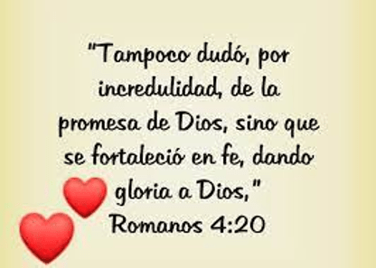 "....Se fortaleció en la Fe, dando gloria a Dios". Romanos 4:20.