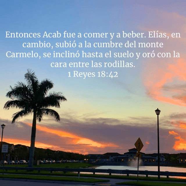 "Acab se fue a comer y beber, pero Elías subió a la cumbre del Carmelo, se inclinó hasta el suelo y puso el rostro entre las rodillas. 1 Reyes 18:42