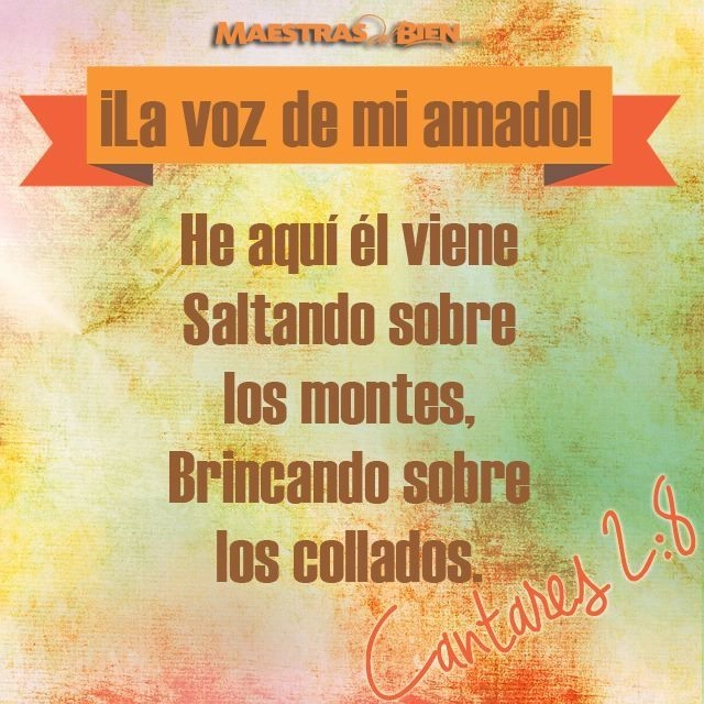 "He aquí él viene Saltando sobre los montes, Brincando sobre los collados. Mi amado es semejante a la gacela o al cervatillo. Cantares 2:8-9