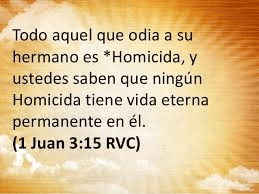 El que no ama a su hermano, permanece en muerte.... Todo aquel que aborrece a su hermano es homicida; y sabéis que ningún homicida tiene vida eterna permanente en él. 1 Juan 3:14-15