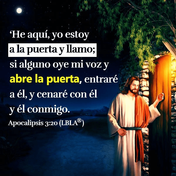 "Estoy a la puerta y llamo; si alguien oye Mi voz y abre la puerta, entraré a él...." Apocalipsis 3:20.