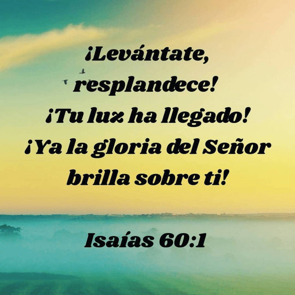 "Levántate, resplandece, porque ha llegado tu luz, y la gloria del Señor ha nacido sobre ti". Isaías 60:1