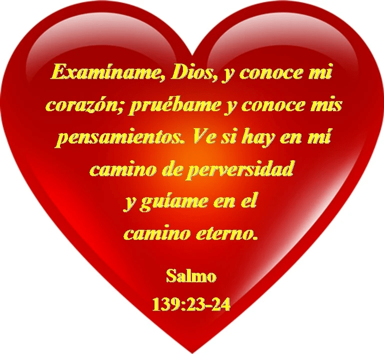 "Examíname, oh Dios, y conoce mi corazón; pruébame y conoce mis pensamientos. Señala cualquier cosa en mí que te ofenda, y guíame por el camino de la vida eterna". Salmo 139:23-24