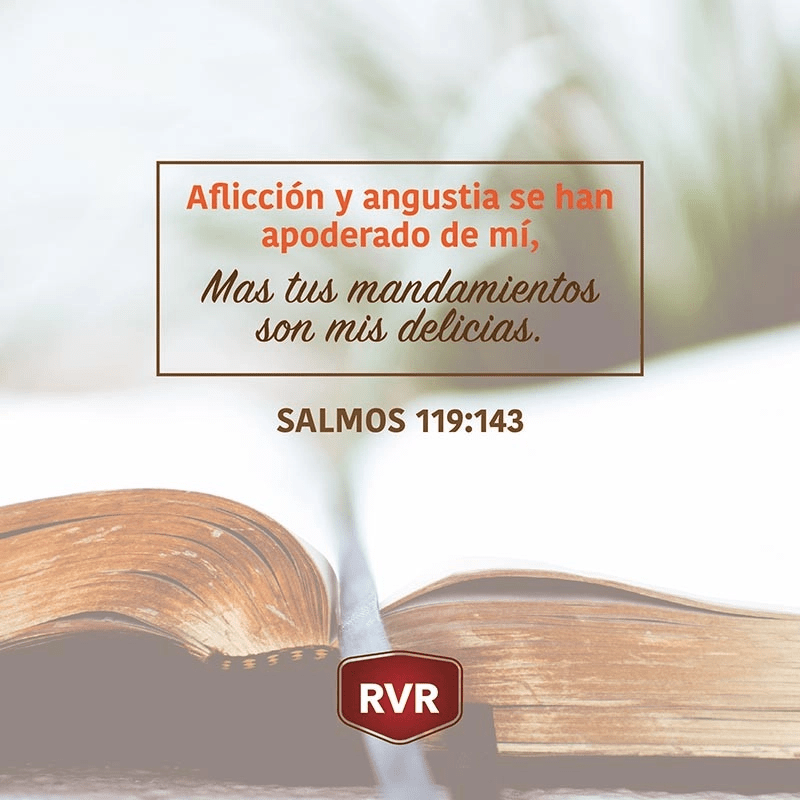 "Aflicción y angustia se han apoderado de mí, pero tus mandamientos son mis delicias". Salmo 119:143