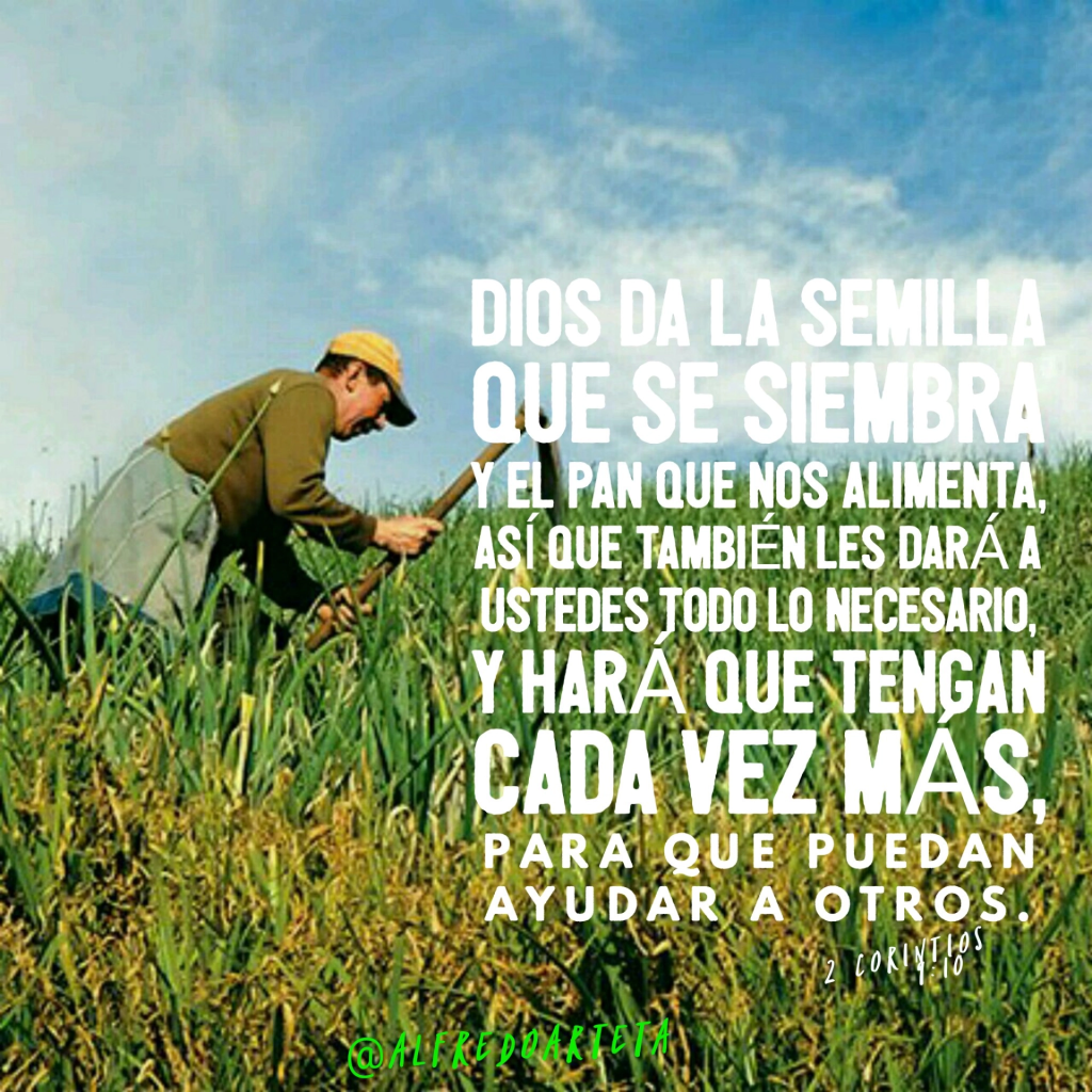 Dios, que da la semilla que se siembra y el alimento que se come, les dará a ustedes todo lo necesario para su siembra, y la hará crecer, y hará que la generosidad de ustedes produzca una gran cosecha. 2 Corintios 9:10