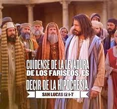 "Cuídense DE LA LEVADURA de los fariseos" Nos advierte el SEÑOR huyan de la hipocresía y de las falsas doctrinas que enseñan los fariseos, es decir, los falsos profetas y maestros; tienen mucho conocimiento bíblico, predican pero no practican; "Los escribas y los fariseos se apoyan en la cátedra de Moisés(en la ley,en la biblia). Así que ustedes deben obedecer y hacer todo lo que ellos les digan, pero No sigan su ejemplo, porque dicen una cosa y hacen otra. Mateo 23:3-4 Los fariseos y escribas expusieron bien la ley de Dios, pero no la obedecieron, esto es hipocresía.