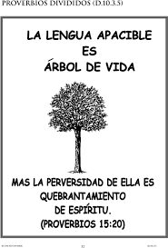 "La lengua apacible es árbol de vida, Pero la perversidad en ella quebranta el espíritu". Proverbios 15:4