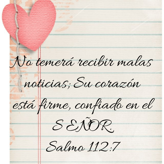 "No temerá recibir malas noticias; Su corazón está firme, confiado en el SEÑOR" Salmo 112:7