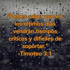 Pero debes saber esto: que en los últimos días vendrán tiempos difíciles. 2 Timoteo 3:1