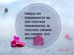 "Porque Mis pensamientos no son los pensamientos de ustedes, Ni sus caminos son Mis caminos". Isaías 55:8