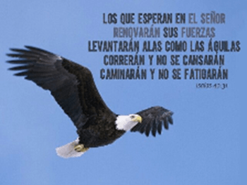 El águila Tiene la capacidad de volar y anidar en las alturas. Su vuelo es majestuoso y sublime. Su visión es muy aguda. Dios nos da la capacidad de levantar alas como las águilas, dice Isaías. Esto es, de volar por encima de las dificultades, de estar sobre los problemas, no debajo, de sobrevolarlos, no de ser aplastados por ellos. La condición es ESPERAR EN ÉL; “Los que ESPERAN en el SEÑOR” Isaías 40:31. El águila debe enfrentar en un momento de su vida, la decisión de seguir viviendo y renovarse o de entregarse a una agónica muerte. De modo que te rejuvenezcas como el águila. Salmo 103:5 Es un periodo muy difícil y doloroso, proceso que termina golpeándose contra la peña para sacarse el pico viejo y desafilado. En este estado de vulnerabilidad absoluta, solo depende de su Creador. Pocos días después comienzan a crecerle nuevas, livianas y muy delicadas plumas, sus garras también se renuevan, y por último le crece un nuevo poderoso y afilado pico.Dios diseñó el sufrimiento del águila para rejuvenecerla. Con nosotros es igual. Somos propensos a ver el dolor y el sufrimiento como destructivo, no podemos verlo como un proceso de fortalecimiento. Satanás quiere que suframos y su objetivo es destructivo. En cambio, el SEÑOR hace que la prueba se transforme en nuestro rejuvenecimiento: Los que confían en el SEÑOR renovarán sus fuerzas; levantarán vuelo de manera sobrenatural por encima de las dificultades. "Correrán, y no se fatigarán; caminarán, y no se cansarán.” Correr y caminar agotan. Pero, aquéllos que esperan en el SEÑOR correrán y caminarán con energía celestial que renueva las fuerzas. El SEÑOR les permitirá remontarse sobre las alturas de Su gracia y de Su poder eterno, para que se mantengan firmes en ÉL, porque es Fiel y NO permitirá que sean sometidos a una prueba más allá de lo que puedan resistir, sino que junto con la prueba les dará también la manera de superarla con éxito. 1Cor.10:13 El dolor, la soledad, la escasez, la enfermedad son reales, pero la renovación es el objetivo Divino. EL SEÑOR siempre triunfa y aunque el Diablo quiere destruirte, ÉL quiere que levantes alas como el águila, que andes en las alturas celestiales que Él diseñó para ti. ¡No le temas a las dificultades, solo suceden para renovarte!