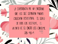 «Por lo que yo he visto, los que aran iniquidad y los que siembran aflicción, eso siegan». Job 4:8