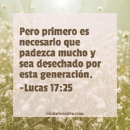 «Pero primero es necesario que Él padezca mucho y sea rechazado por esta generación». Lucas 17:25