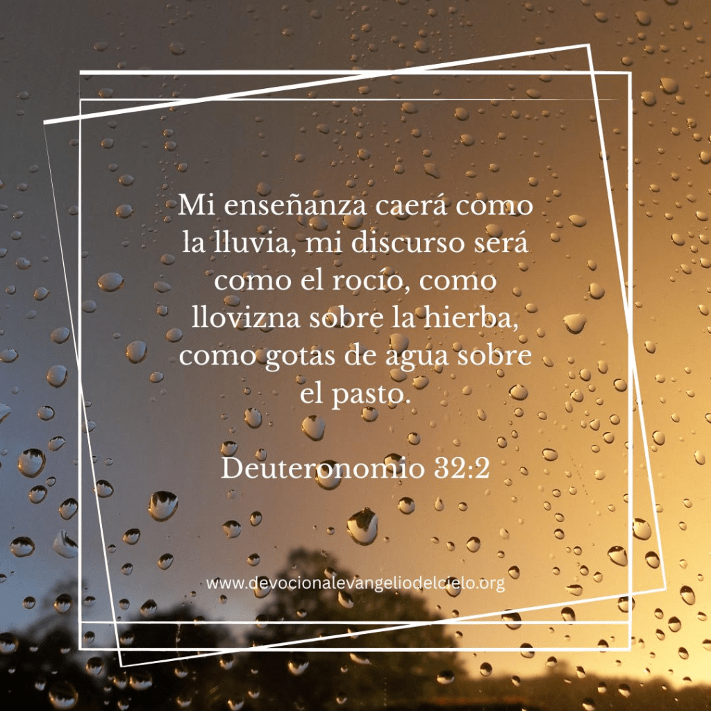«Mi enseñanza caerá como la lluvia, mi discurso será como el rocío, como llovizna sobre la hierba, como gotas de agua sobre el pasto.» — Deuteronomio 32:2