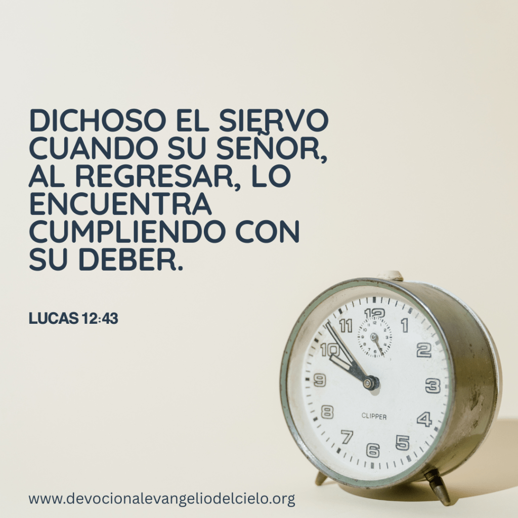 «Dichoso el siervo cuando su señor, al regresar, lo encuentra cumpliendo con su deber» — Lucas 12:43