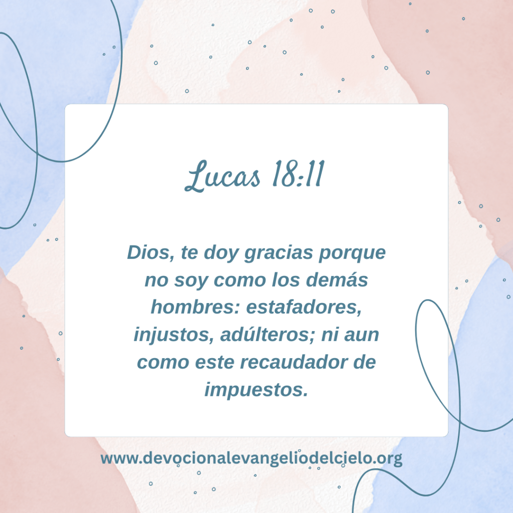 «Dios, te doy gracias porque no soy como los demás hombres: estafadores, injustos, adúlteros; ni aun como este recaudador de impuestos.» Lucas 18:11