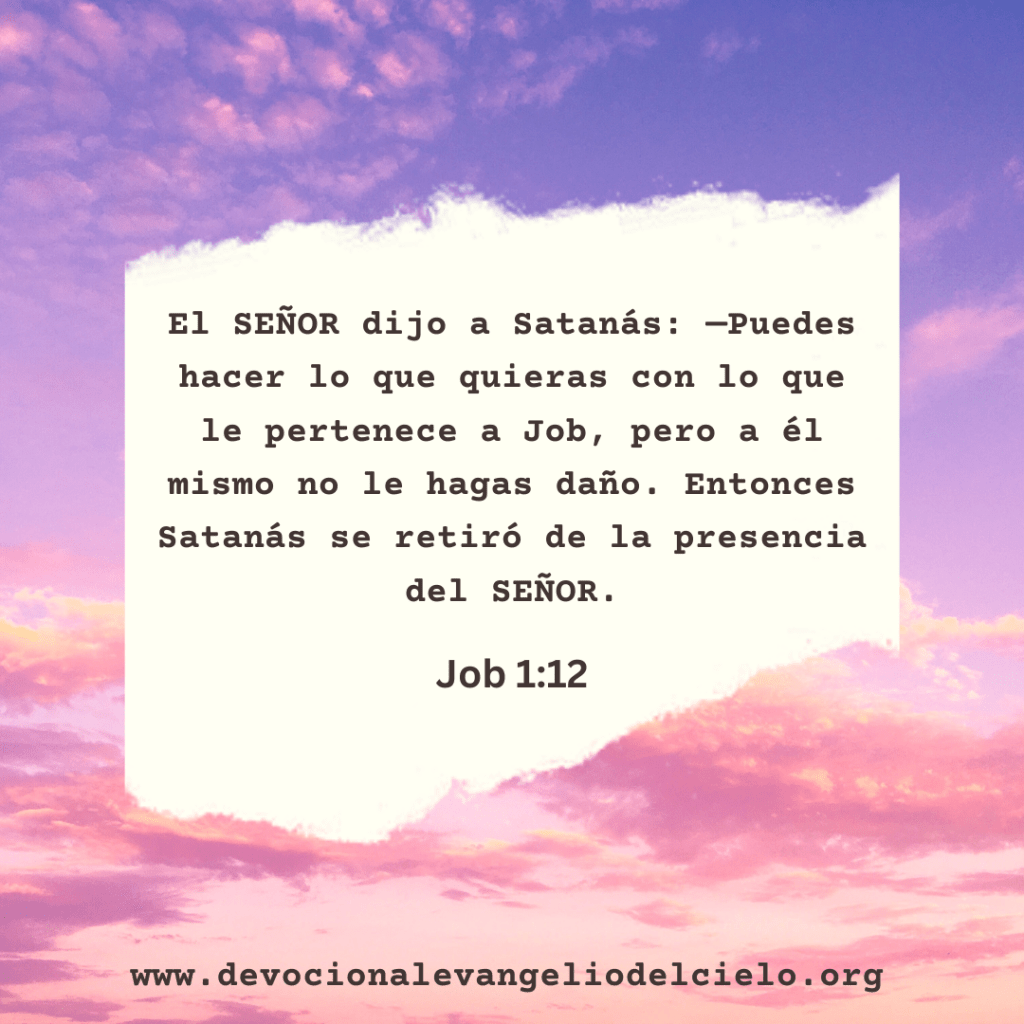 «El SEÑOR dijo a Satanás: Puedes hacer lo que quieras con lo que le pertenece a Job, pero a él mismo no le hagas daño. Entonces Satanás se retiró de la presencia del SEÑOR.» Job 1:12