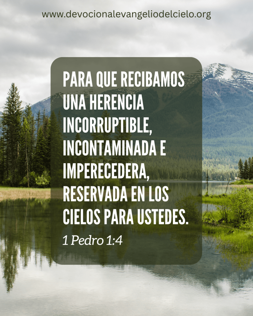 «Para que recibamos una herencia incorruptible, incontaminada e imperecedera, reservada en los cielos para ustedes». 1 Pedro 1:4