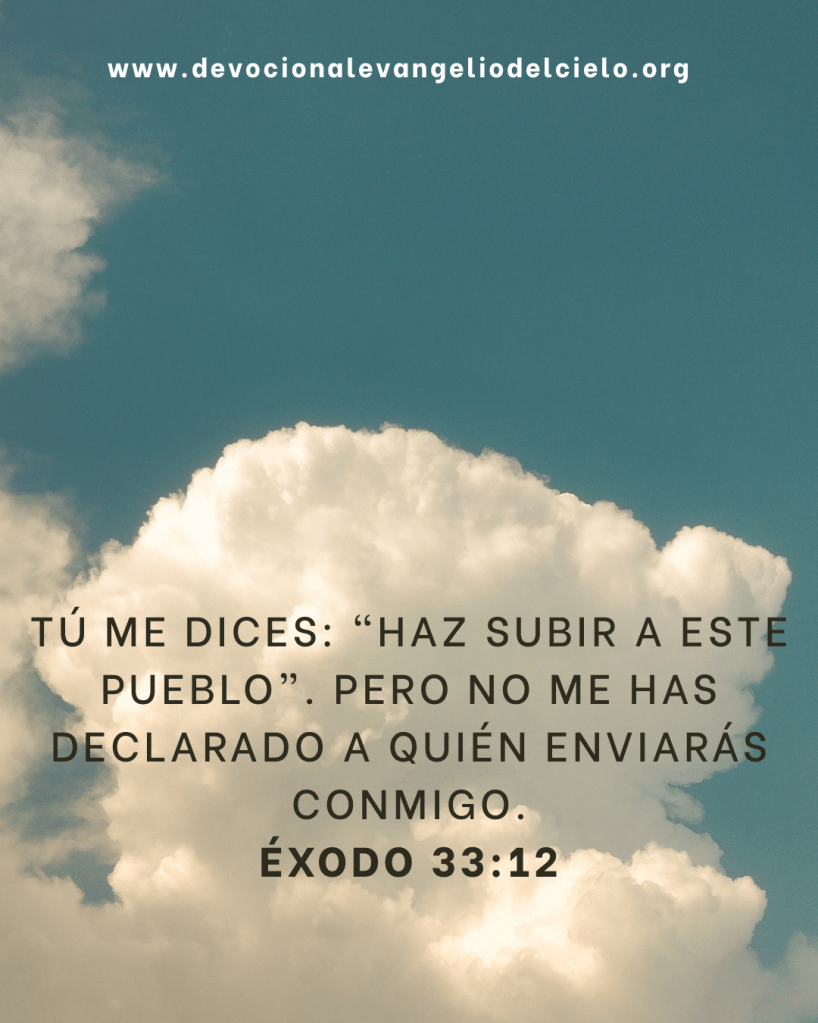 Tú me dices: “Haz subir a este pueblo”. Pero no me has declarado a quién enviarás conmigo. Éxodo 33:12