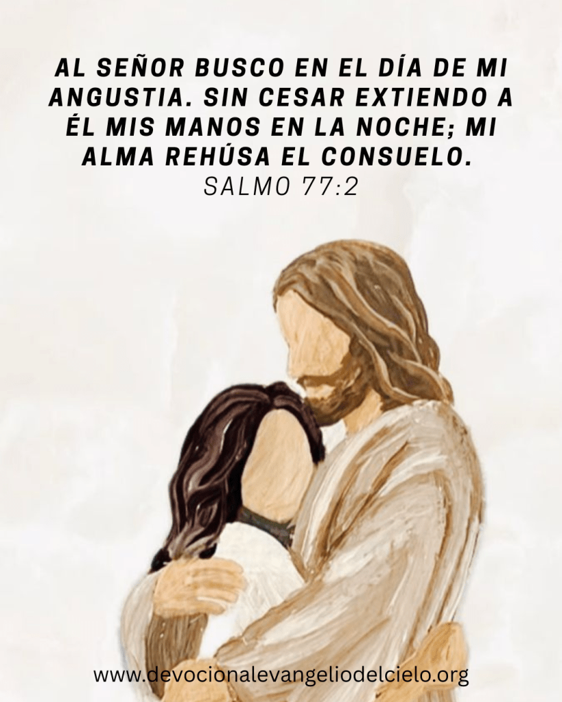 «Al SEÑOR busco en el día de mi angustia. Sin cesar extiendo a él mis manos en la noche; mi alma rehúsa el consuelo». Salmo 77:2
