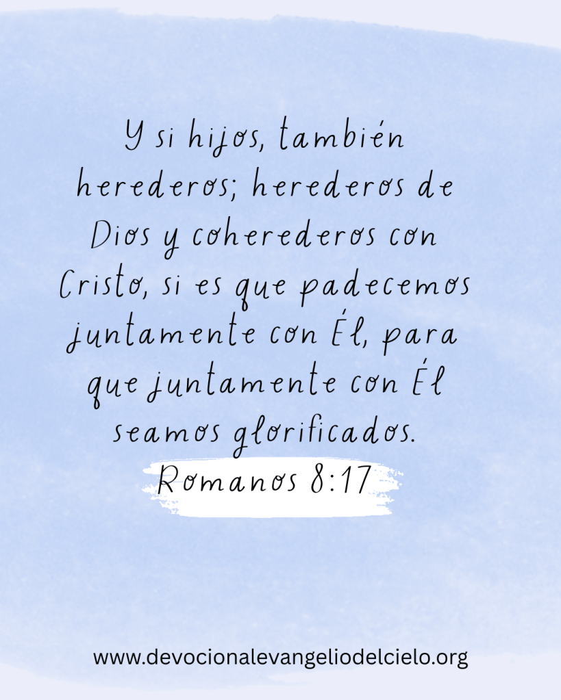 «Y si hijos, también herederos; herederos de Dios y coherederos con Cristo, si es que padecemos juntamente con Él, para que juntamente con Él seamos glorificados.» Romanos 8:17