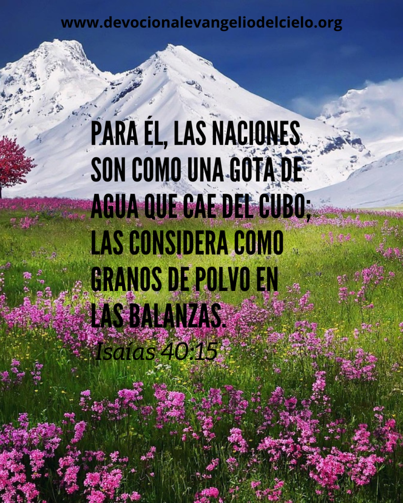 “Para Él, las naciones son como una gota de agua que cae del cubo; las considera como granos de polvo en las balanzas,” Isaías 40:15