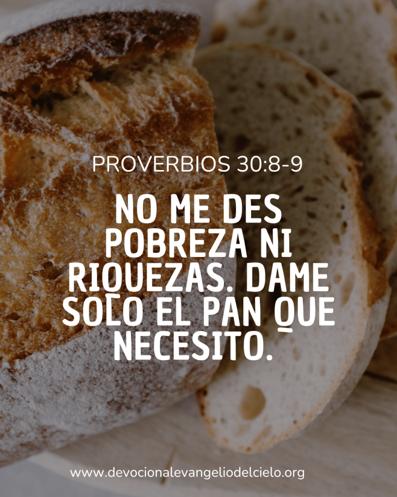 «No me des pobreza ni riquezas. Dame solo el pan que necesito;» Proverbios 30:8-9.