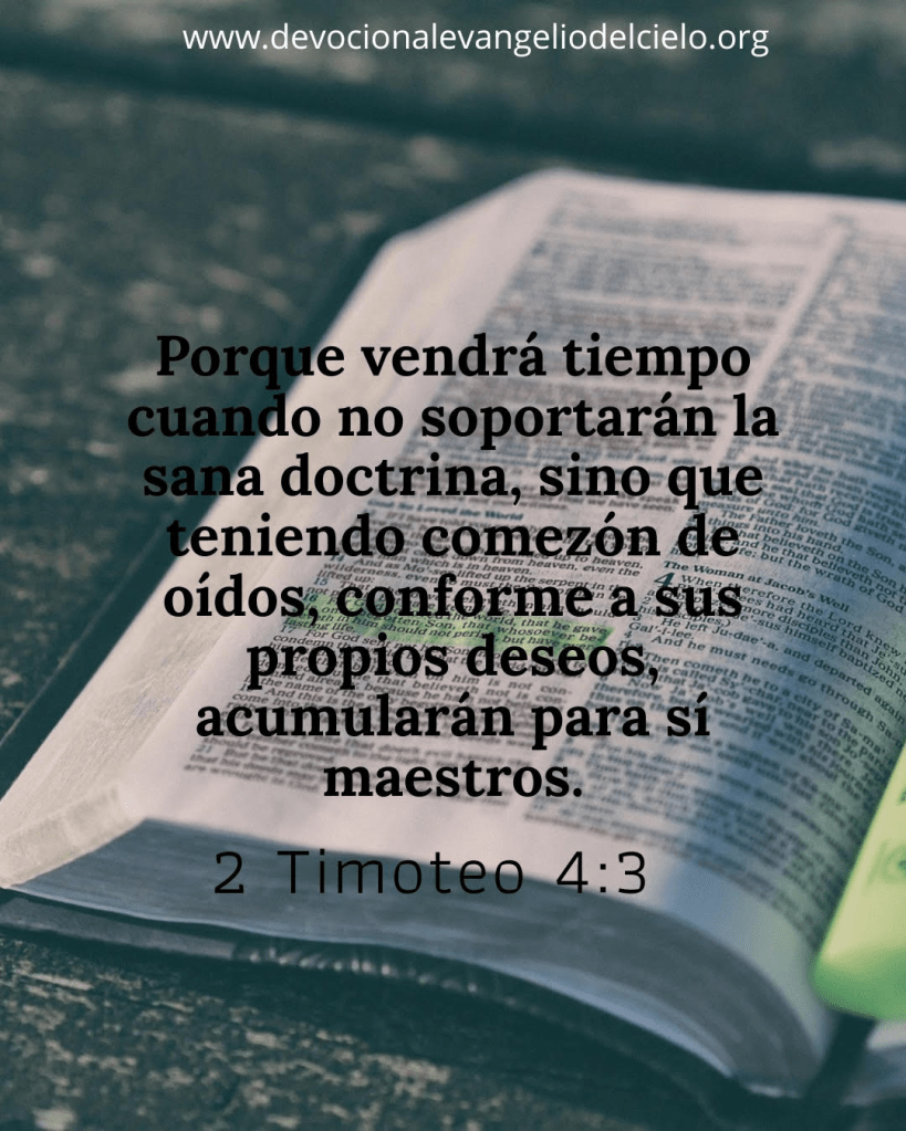 Señor, abre nuestros ojos para discernir la verdad de Tu Palabra y danos un corazón firme para amar la sana doctrina. Líbranos de la comezón de oír y de todo engaño que desvía del Evangelio verdadero. Que Tu Espíritu Santo nos guíe siempre hacia la luz, la fidelidad y la obediencia. Amén.