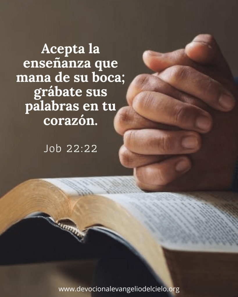 “Acepta la enseñanza que mana de su boca; grábate sus palabras en tu corazón”. Job 22:22