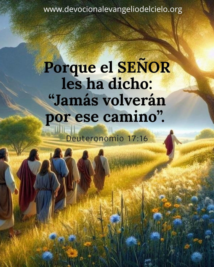 Porque el SEÑOR les ha dicho: “Jamás volverán por ese camino”. Deuteronomio 17:16