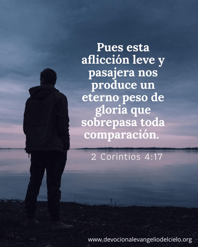 Pues esta aflicción leve y pasajera nos produce un eterno peso de gloria que sobrepasa toda comparación, 2 Corintios 4:17