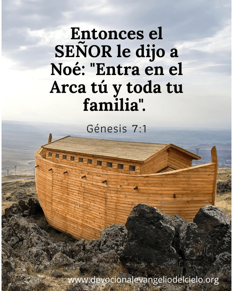 Entonces el SEÑOR le dijo a Noé: «Entra en el Arca tú y toda tu familia». Génesis 7:1