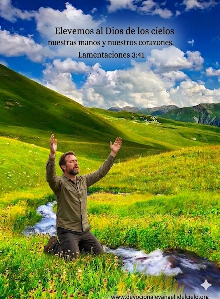 Elevemos al Dios de los cielos nuestras manos y nuestros corazones. Lamentaciones 3:41